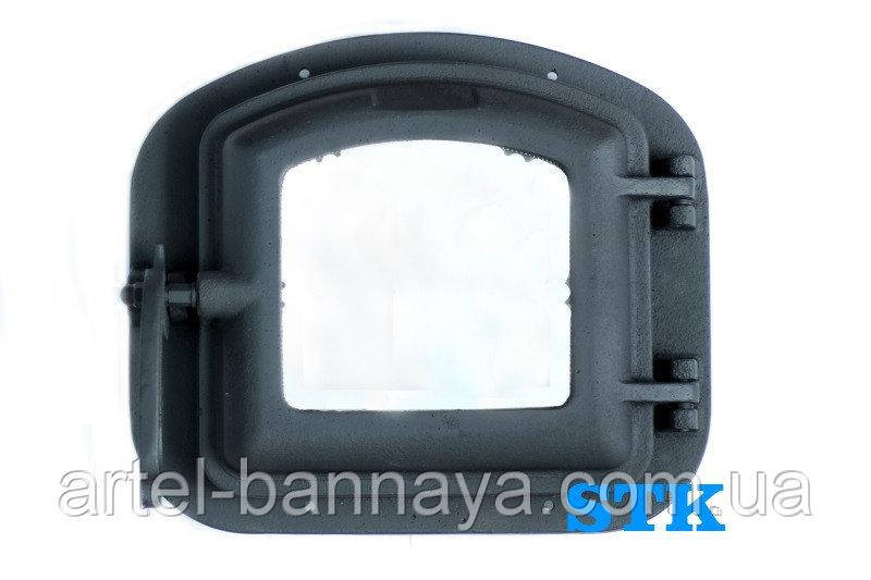 Дверцята для печі чавунна з жароміцним склом 340х300мм
